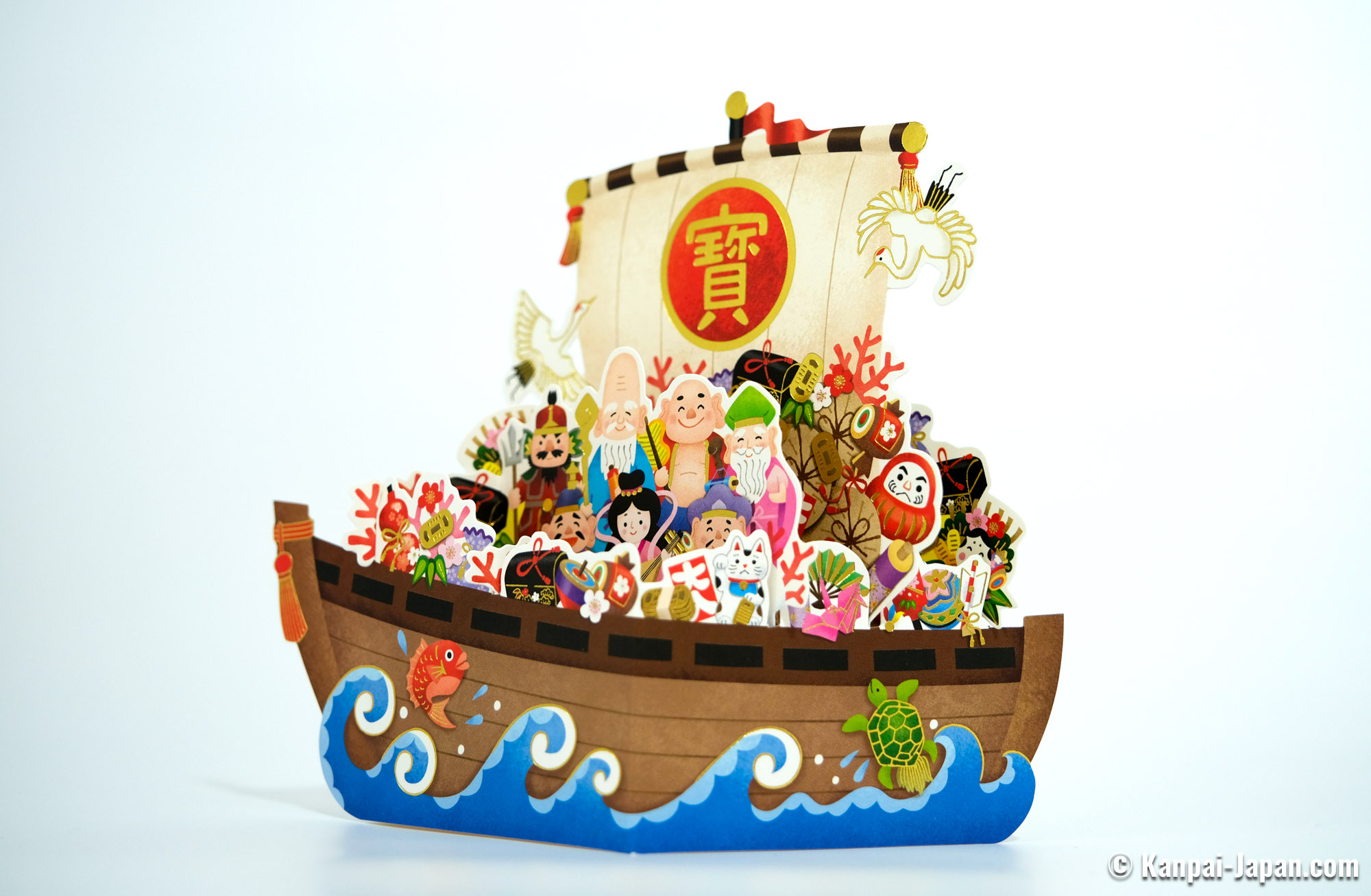 The house is adorned with symbolic and auspicious decorations, such as: kadomatsu compositions of pine branches and bamboo at the entrances, images of the Takarabune "lucky boat” and of the 7 Lucky Gods. Kagami mochi (confectionery made of 2 mochi and a small bitter orange stacked together) are placed as offerings on the family altar.