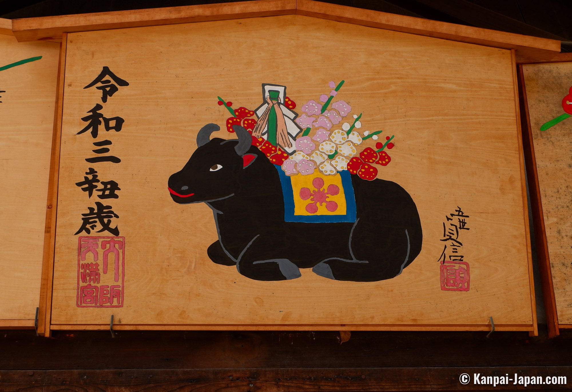 - The Tenman-gu shrines throughout the country, dedicated to Sugawara no Michizane, that all have a statue of an ox, his favorite animal;