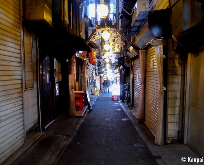 Then heading towards Kabukicho at the east of Shinjuku station, we walked through Omoide Yokocho. The labyrinth of timeless alleys, whose numerous eateries usually filled the air with delicious grilled meat flavors, was extremely quiet. Tourists have been absent for more than one year and with the 8 p.m. curfew, most of the shops were closed anyway.