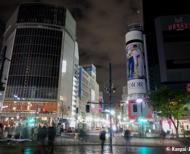 At Shibuya stationās "Hachiko" exit, still under extension works, the weak luminosity around the famous crossing was striking. Tokyoās Time Square was barely recognizable: its giant screens were all turned off and Shibuya crossing was immersed in an extraordinary darkness, only alleviated by the streetlights on the sidewalks. The change was also in the sound ambiance: no more loud music and permanent commercials announcements. The absence of the noise and liveliness that characterized one of the biggest crossings in the world was stunning.