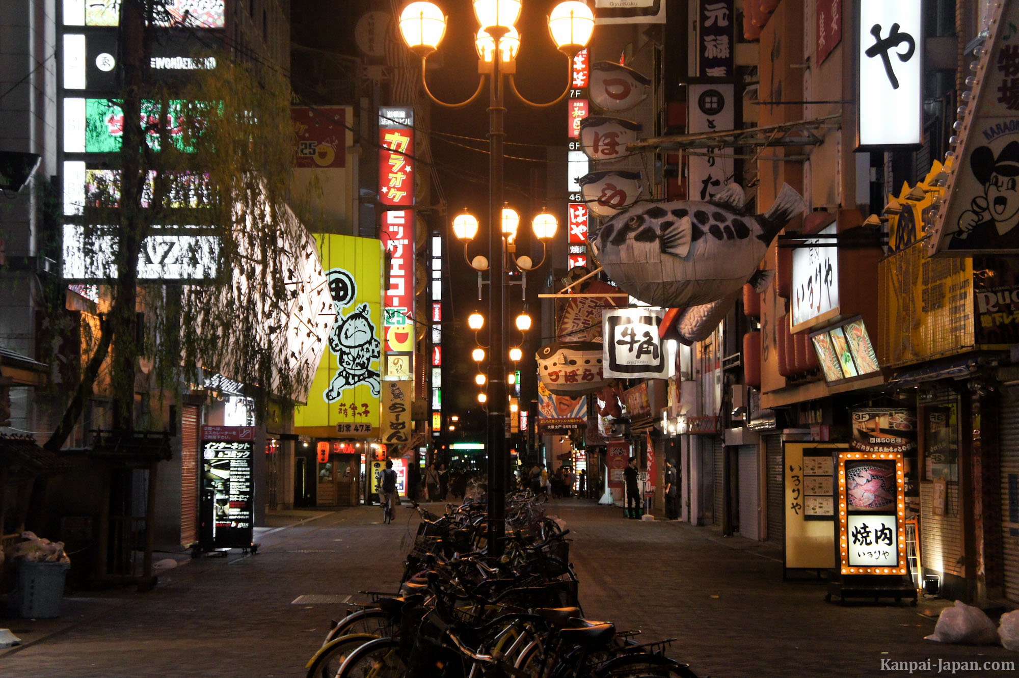 Osaka, true to its name of Japan’s kitchen, is the place where fugu consumption is the highest (60 % of the national production every year!); the fish is nicknamed teppo 鉄砲 in reference to death that can hit the eater as fast as a bullet. Osaka also holds the record of the highest number of licensed fugu-masters: about 110,000, that is to say 5 times more than in Tokyo and 14 times more than in Shimonoseki! There, fugu is preferably served as a nabe, a convivial dish that is cooked and shared at the table. It was home to the historical Zuboraya restaurants, whose sign was a giant fugu paper, and that are now definitely closed.