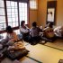 - Tables at the center of the shop, paired with chairs or armchairs. Walls in this section are decorated with artworks made of painted fusuma panels.