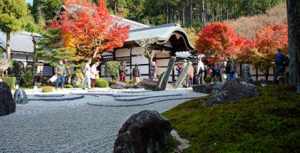 To enjoy the visit, make sure to memorize the term shakkei, which means "borrowing of scenery" and explains why it is difficult to dissociate the villaās grounds from the mountain, the latter backing the residence while providing it a natural decor. The gardens thus look wider as they marvelously blend with the surrounding scenery. In addition, the soft melody of water, that can be heard at each point of interest of the visit, contributes to a solemn yet relaxing atmosphere.