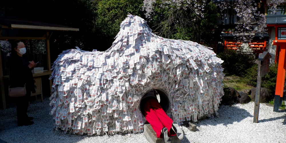 Yasui Kompiragu is an old shrine located in the south of the touristy Gion district in the heart of Kyoto in Japan. Nicknamed the "shrine to break off relationships", it is famous for its mysterious pierced rock to which people pray for a happy love. It is also home to a small museum dedicated to ema votive plates and is the last receptacle of the geiko’s damaged hair ornaments.