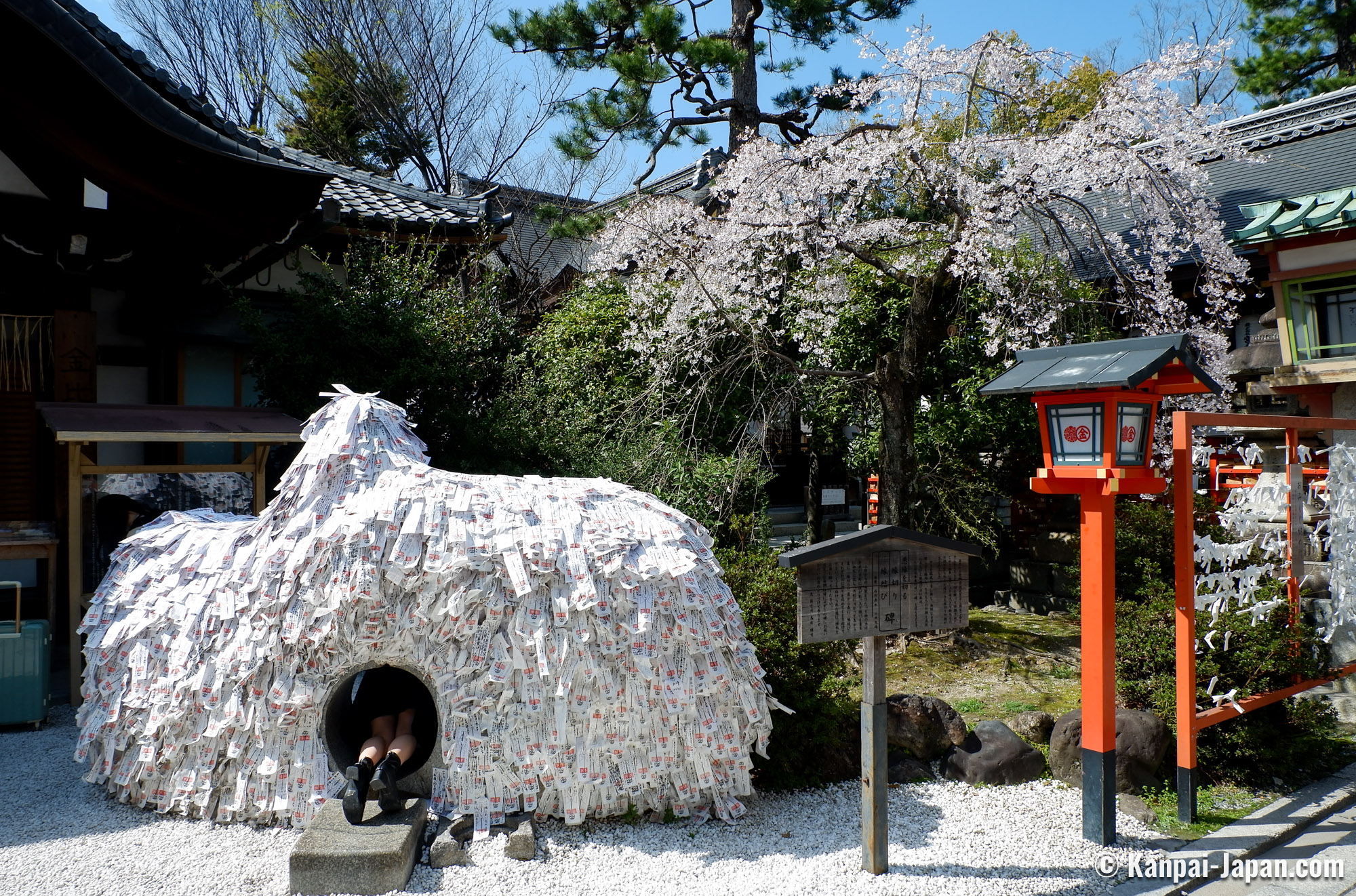Yasui Konpiragu is an unpretentious shrine but the place is constantly filled with Japanese or international visitors eager to pray for a happy love and try passing through the stone. It makes for a nice romantic halt while discovering the geisha’s traditional Kyoto and solemn temples like Kennin-ji or Kodai-ji.