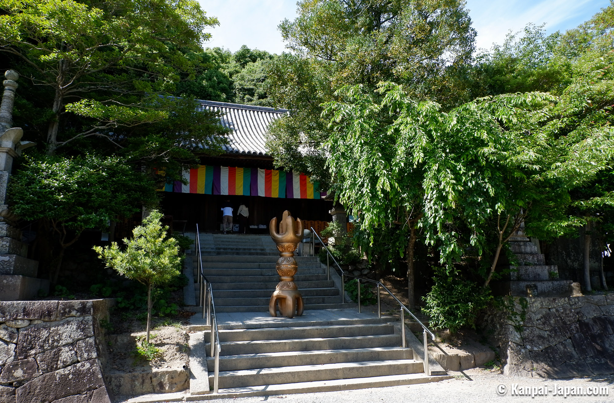 Ishite-ji is the 51th temple of the Ohenro pilgrimage on Shikoku Island, located near Dogon Onsen hot springs district in Matsuyama, the capital of Ehime prefecture in Japan. It was founded in the early 8th century by the traveling monk Gyoki, and later became a temple dedicated to the legend of the 1rst 88 temples route pilgrim.