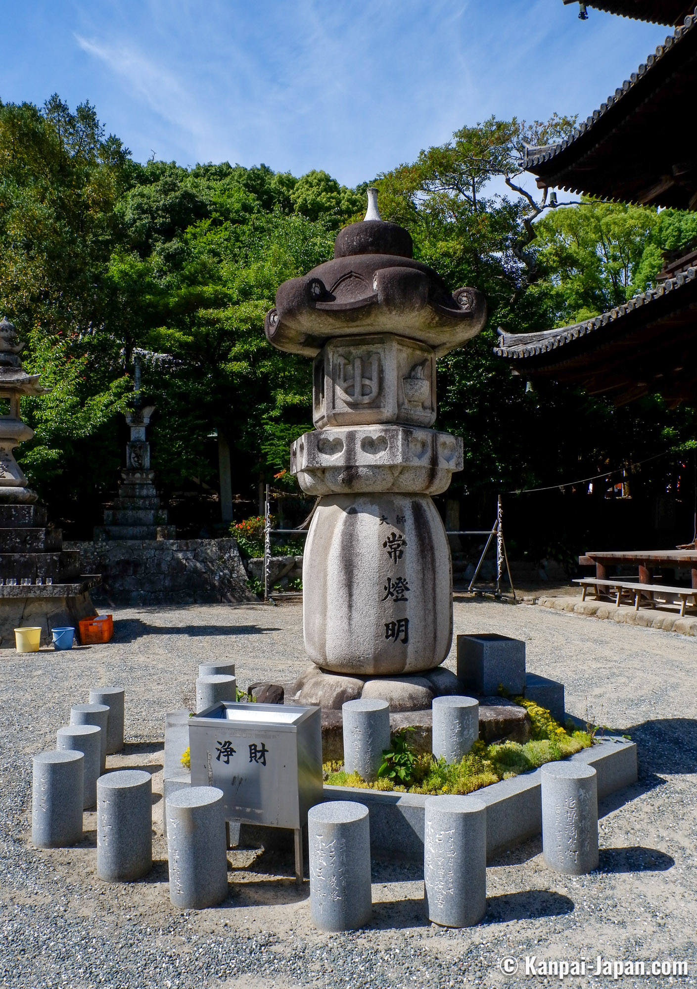 - Niomon, a 7-meters high gate, built in 1318 and designated National Treasure. It is adorned with giant straw sandals on which pilgrims insert „1 coins;