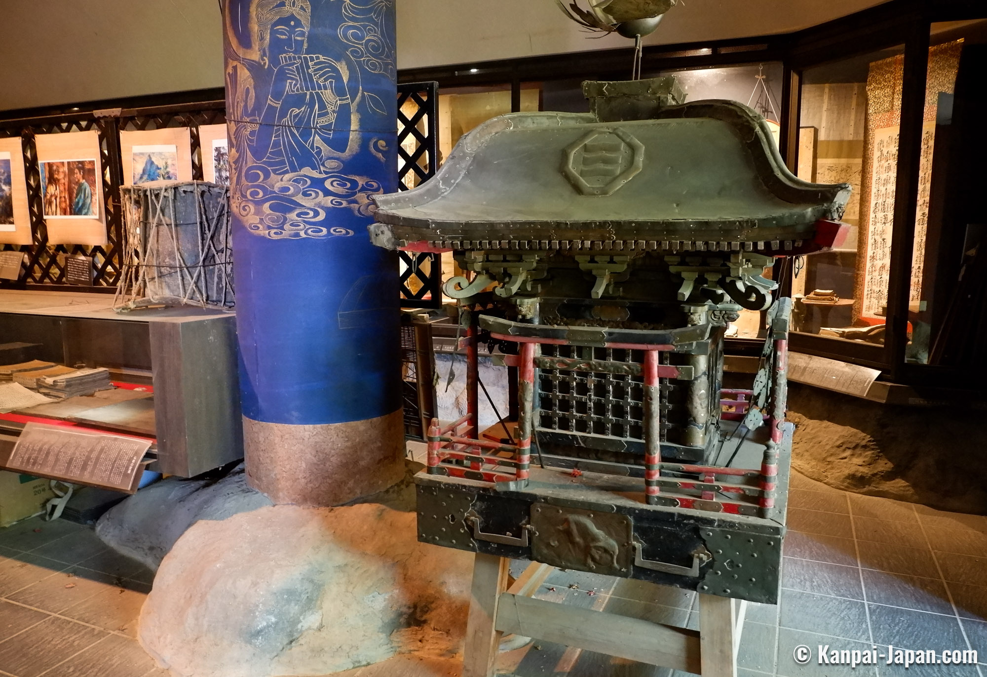 - Mantora Dokutsu (ćć³ćć©ę“ēŖ), a 200 meters long underground gallery. It opens on an inner temple hidden further into the mountain and characterized by its original golden dome;