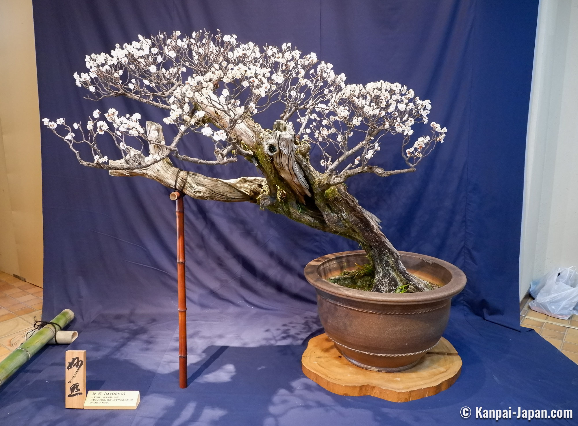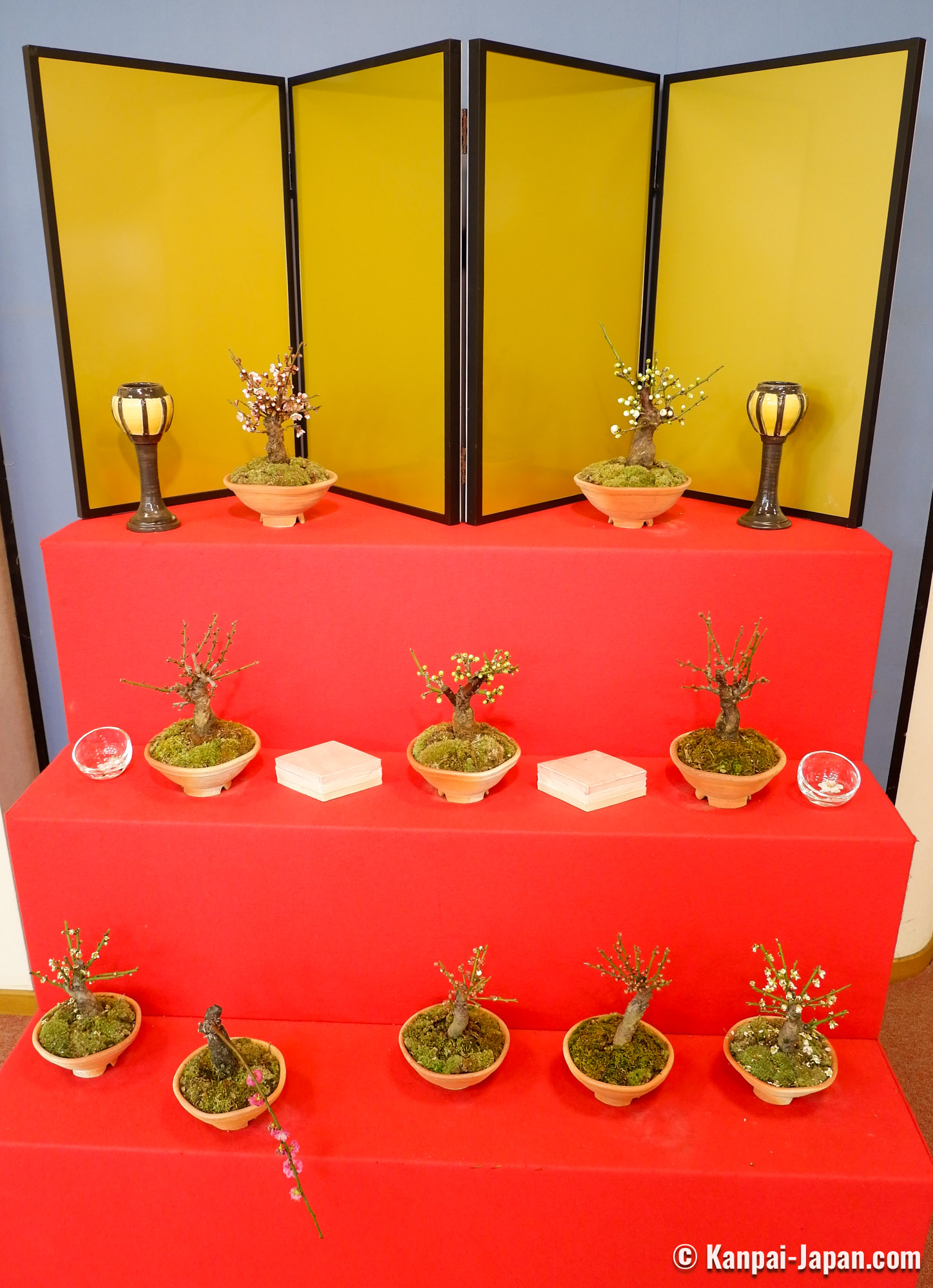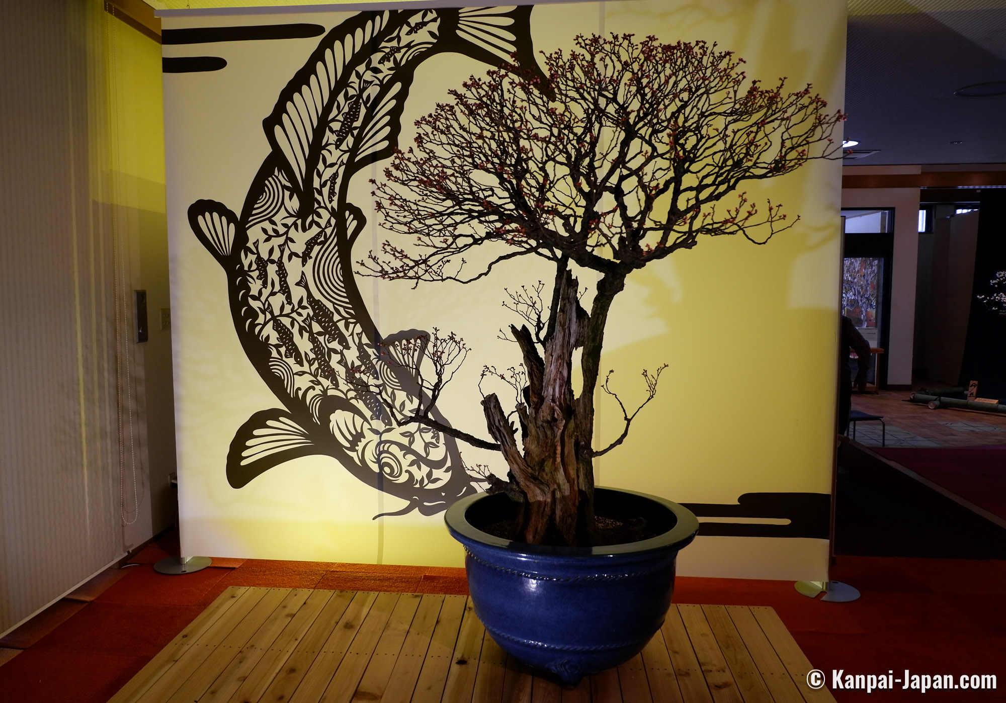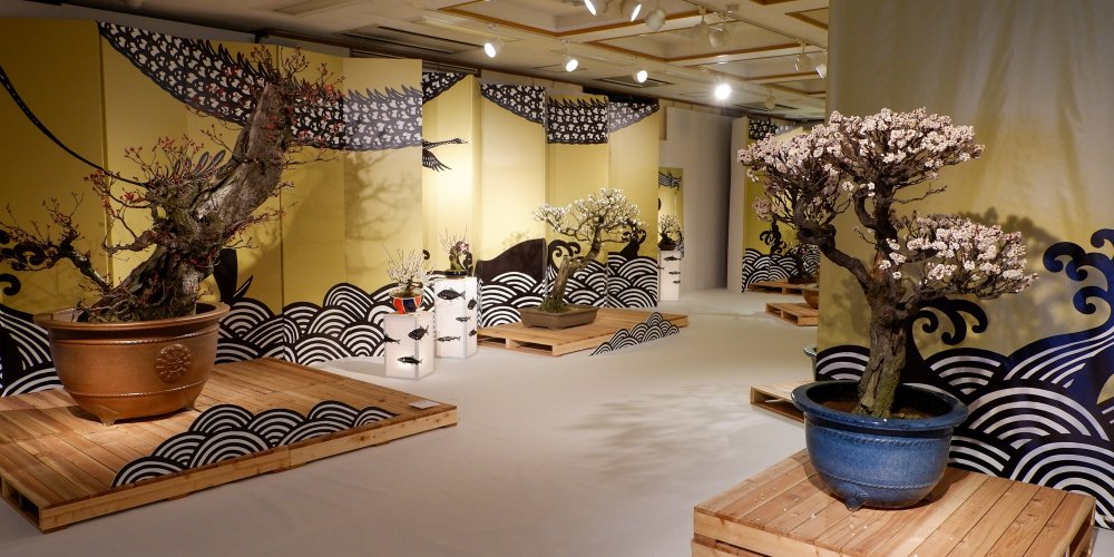 Being true living art forms, each displayed bonsai is introduced with its official name and its main characteristics, such as the shape it reminds of. No need to be a connoisseur, anyone can be moved by the quality of the work undertaken to preserve these potted trees. It is undoubtedly one of the largest ume bonsai exhibition in Japan.