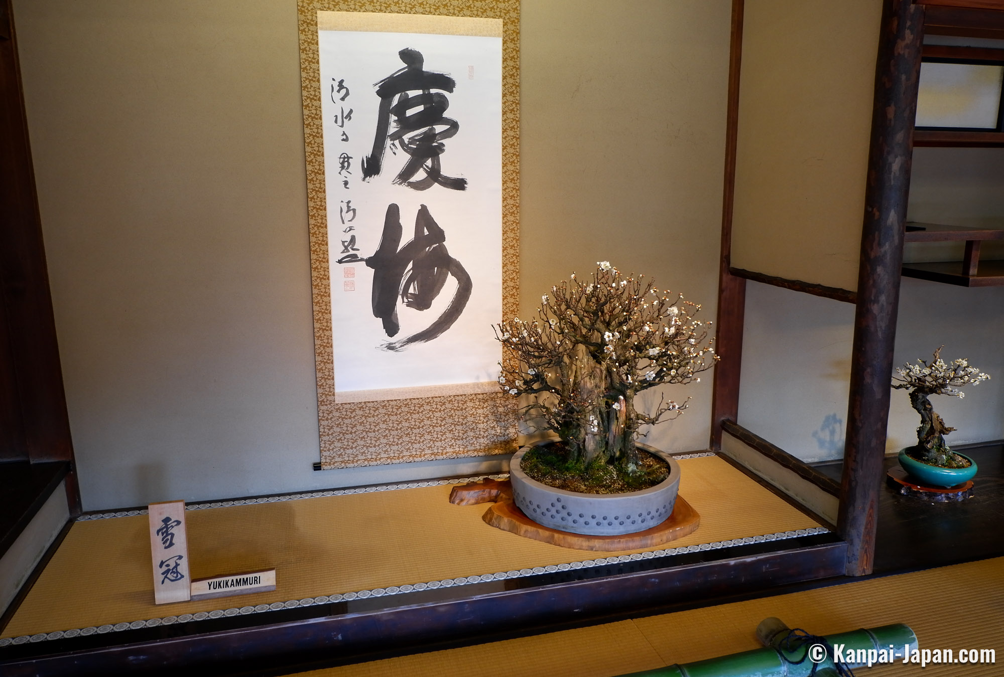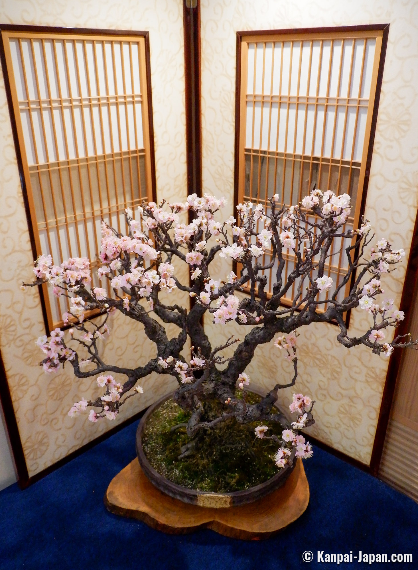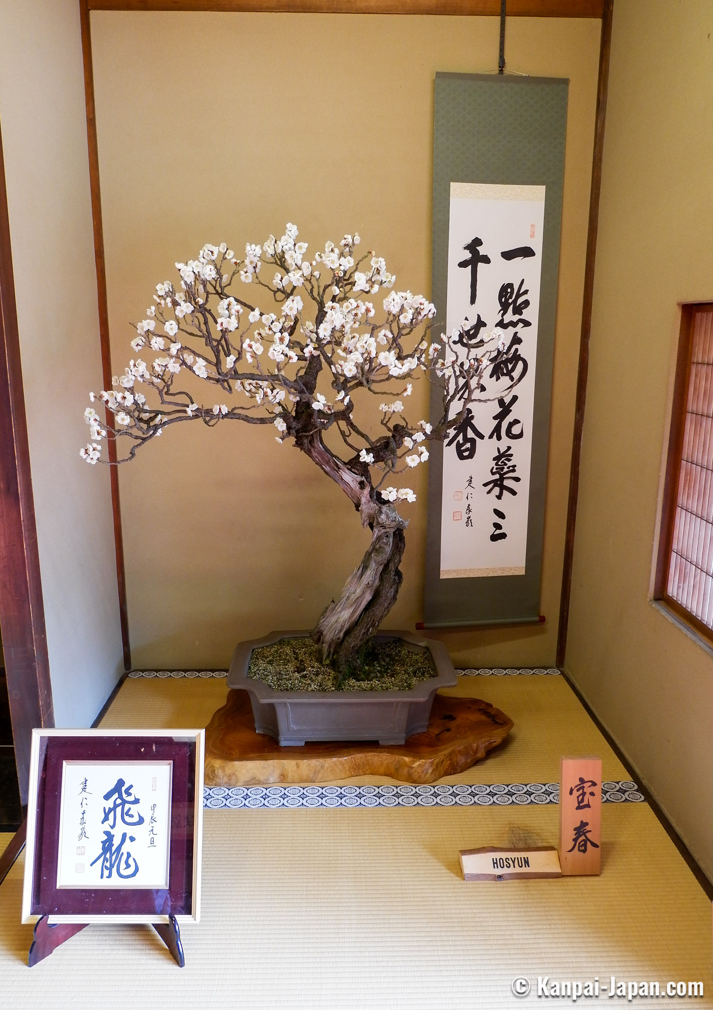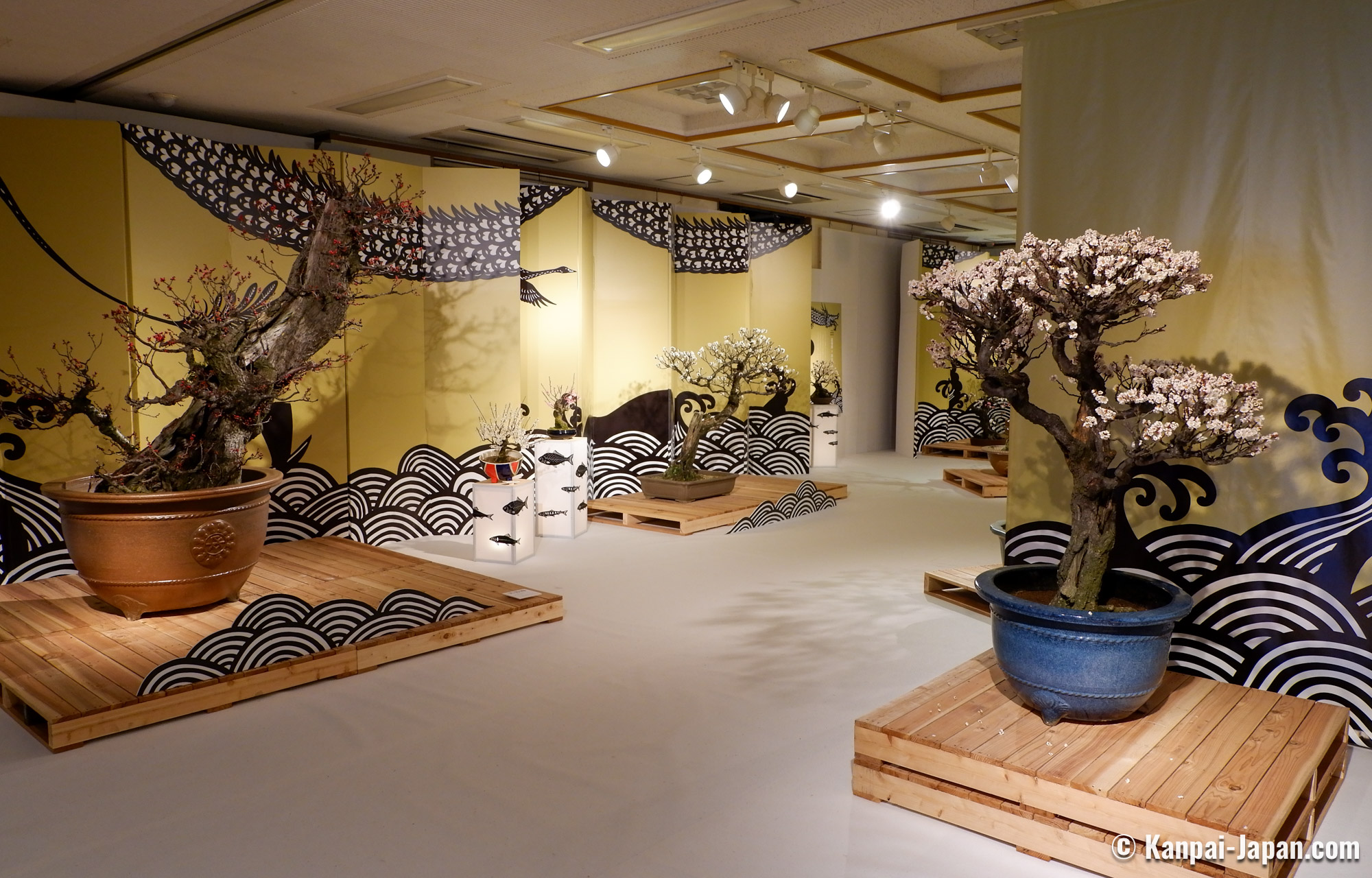 Being true living art forms, each displayed bonsai is introduced with its official name and its main characteristics, such as the shape it reminds of. No need to be a connoisseur, anyone can be moved by the quality of the work undertaken to preserve these potted trees. It is undoubtedly one of the largest ume bonsai exhibition in Japan.