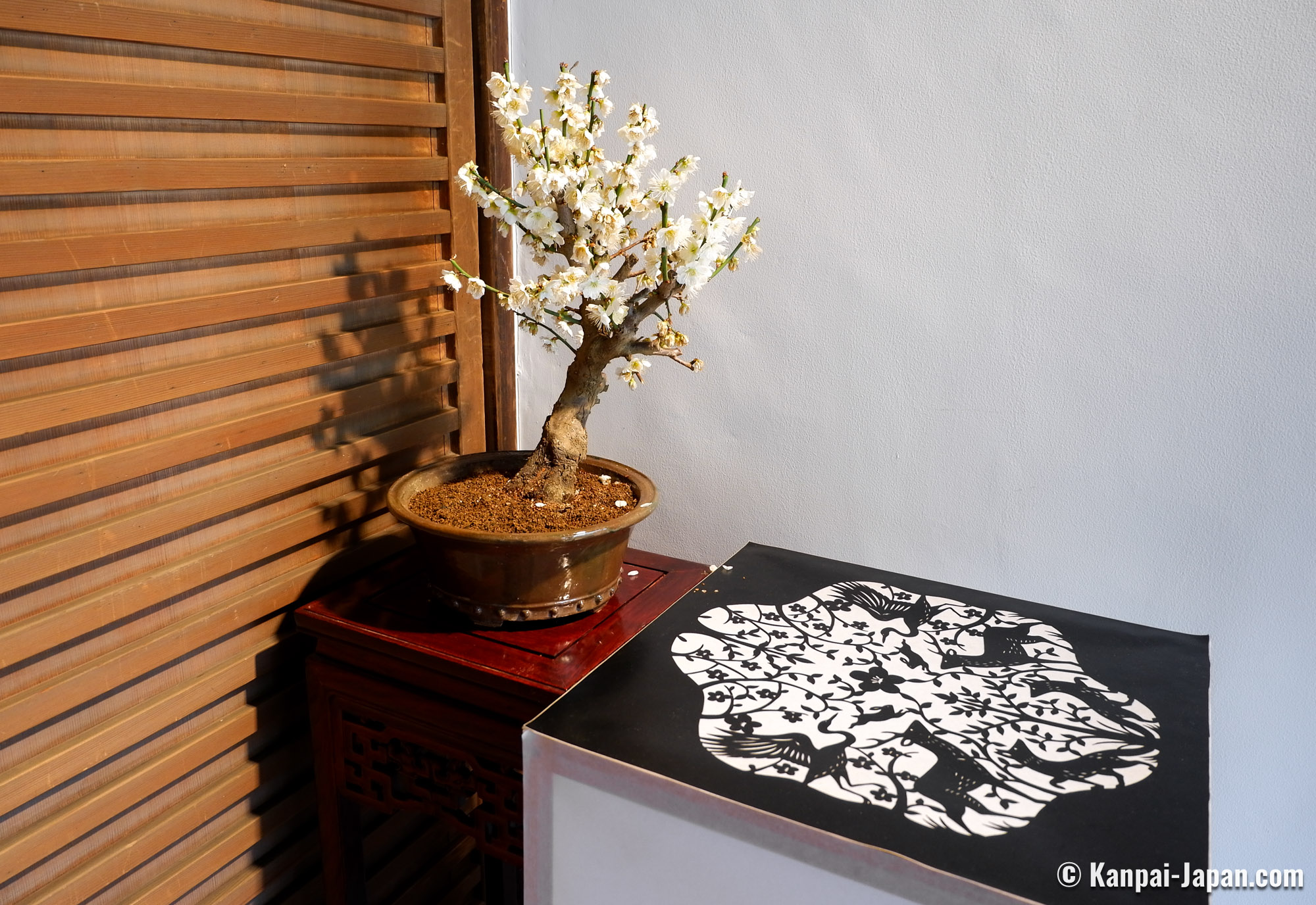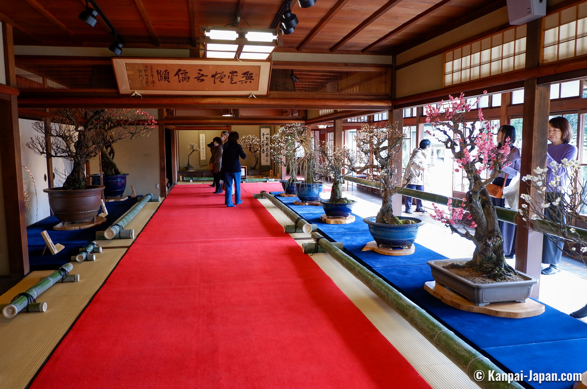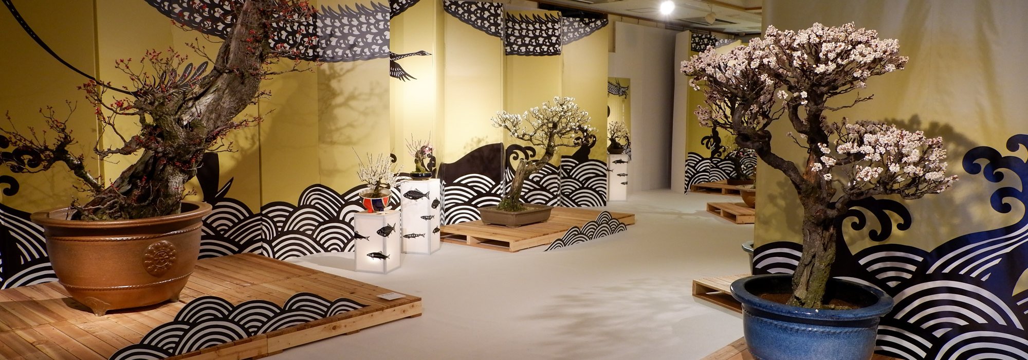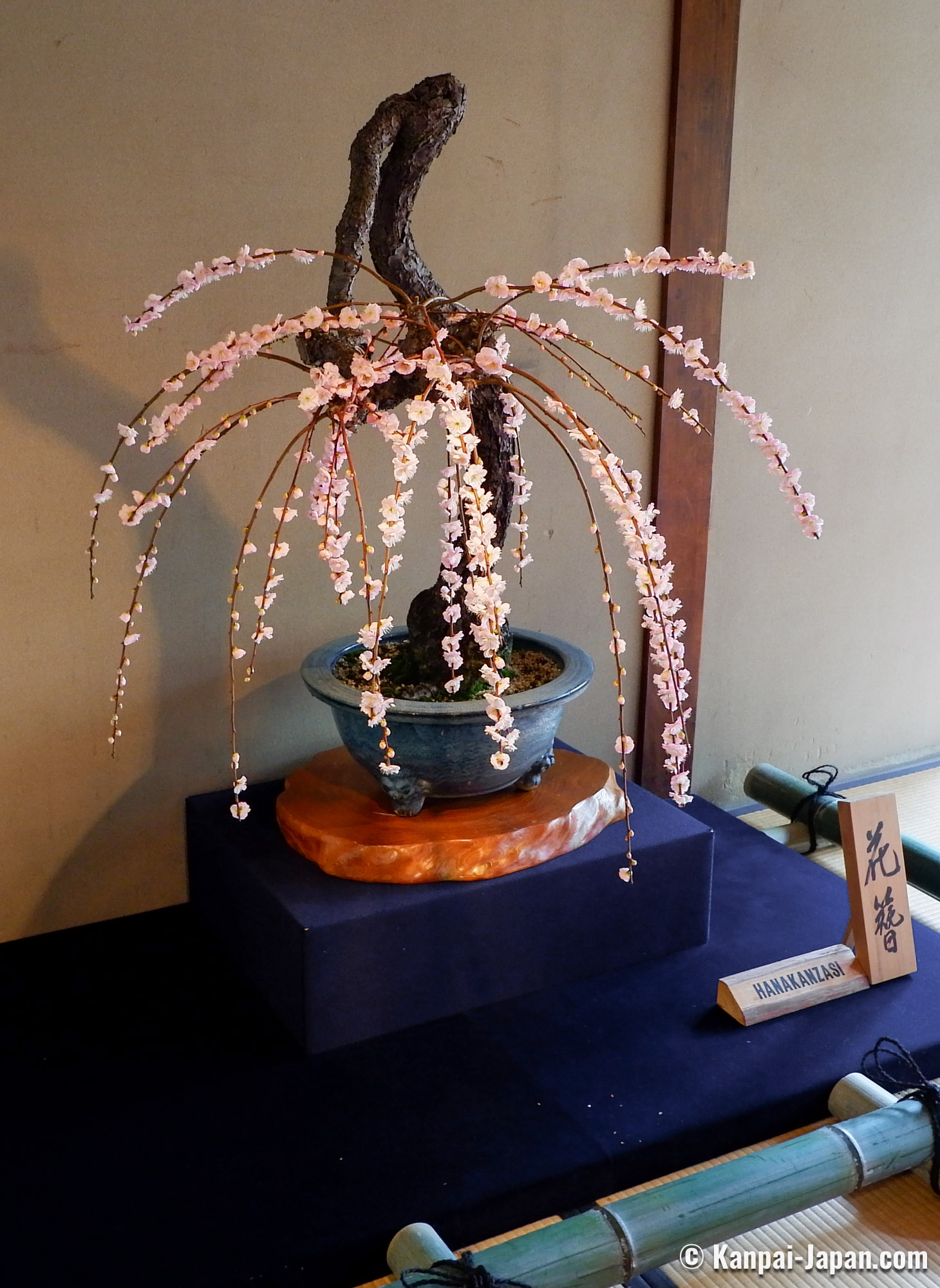 Being true living art forms, each displayed bonsai is introduced with its official name and its main characteristics, such as the shape it reminds of. No need to be a connoisseur, anyone can be moved by the quality of the work undertaken to preserve these potted trees. It is undoubtedly one of the largest ume bonsai exhibition in Japan.