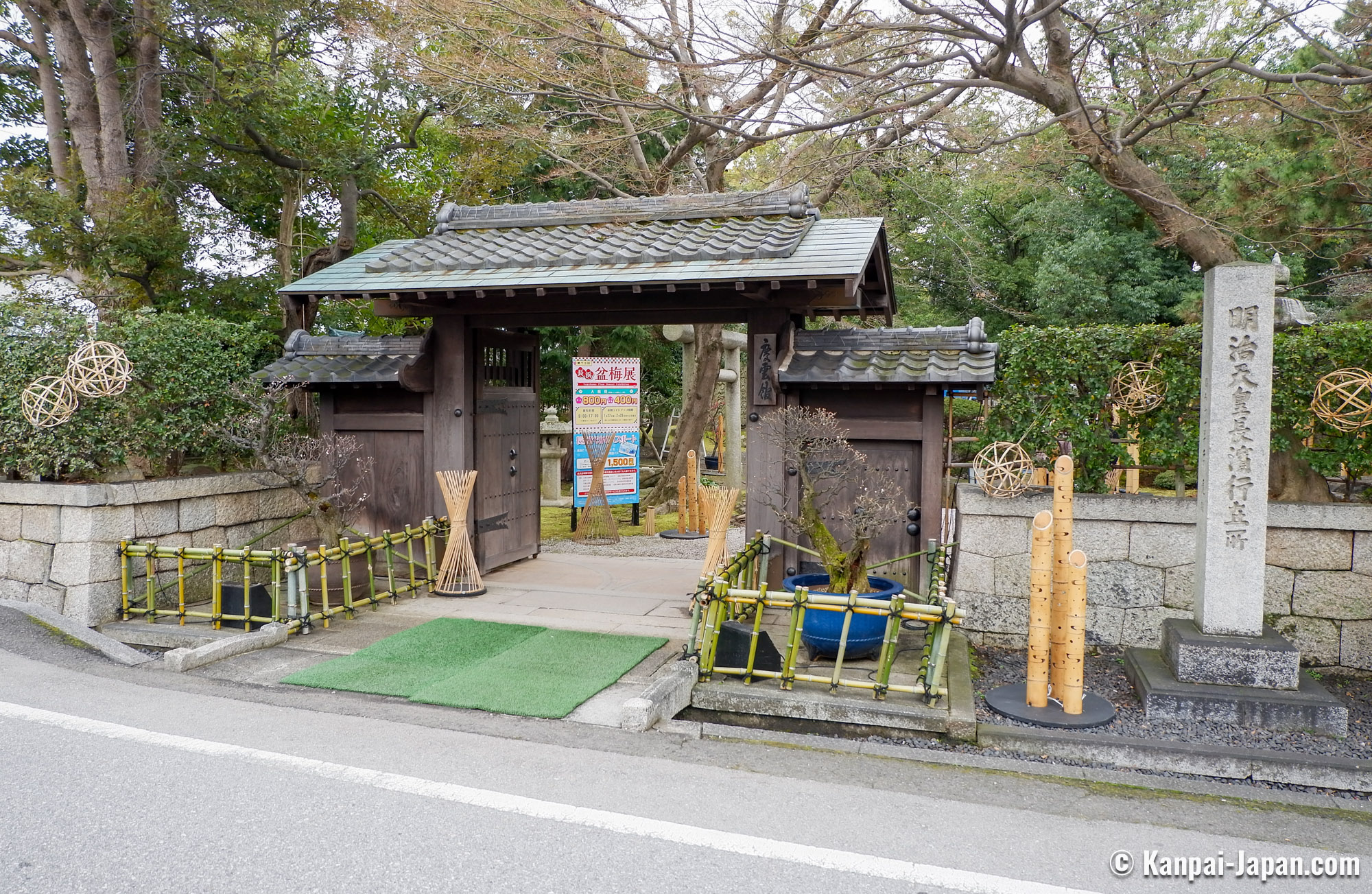 Nagahama Bonbaiten has been existing since 1952 and takes place in the historical Keiunkan (慶雲館), a former guest house built in 1887 to receive emperor Meiji (1852 - 1912) in the city. The large tatami room is thus used to display the majestic bonsai, and visitors can enjoy both the traditional setting and the plum blossoms. Matcha tea amateurs can drink their favorite beverage at the tea room specially arranged for the occasion.