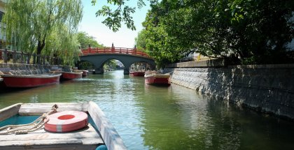 Ultimate zone of the city center to visit, the nearby area of the streams of Nakashima and its cute small bridges crossing it, such as Megane-bashi bridge dating from the 17th century.