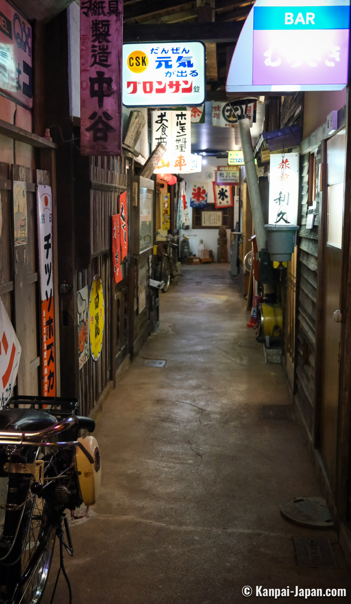 - 2 streets, Showa Alley and Showa Yokocho, with about 20 shops, bars and restaurants, music instrument shops, beauty salon, etc. at the ground floor;