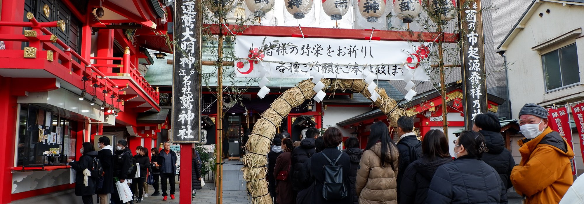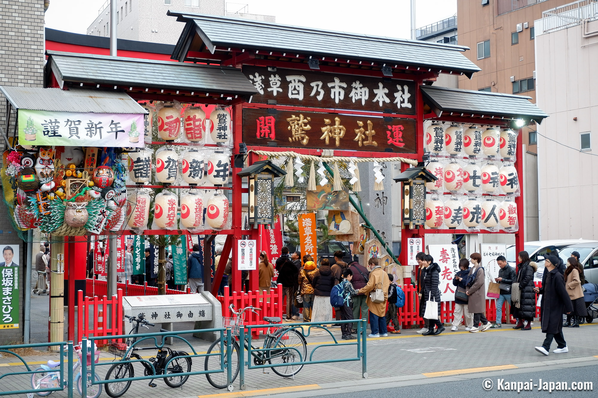Asakusa Otori-jinja is a small Shinto shrine located in Asakusa district, in the north-east of Tokyo. Its confidential enclosure is quiet most of the time, except for Tori no Ichi in November, and during the Japanese New Year celebrations when worshipers crowd its grounds to pray for good fortune.