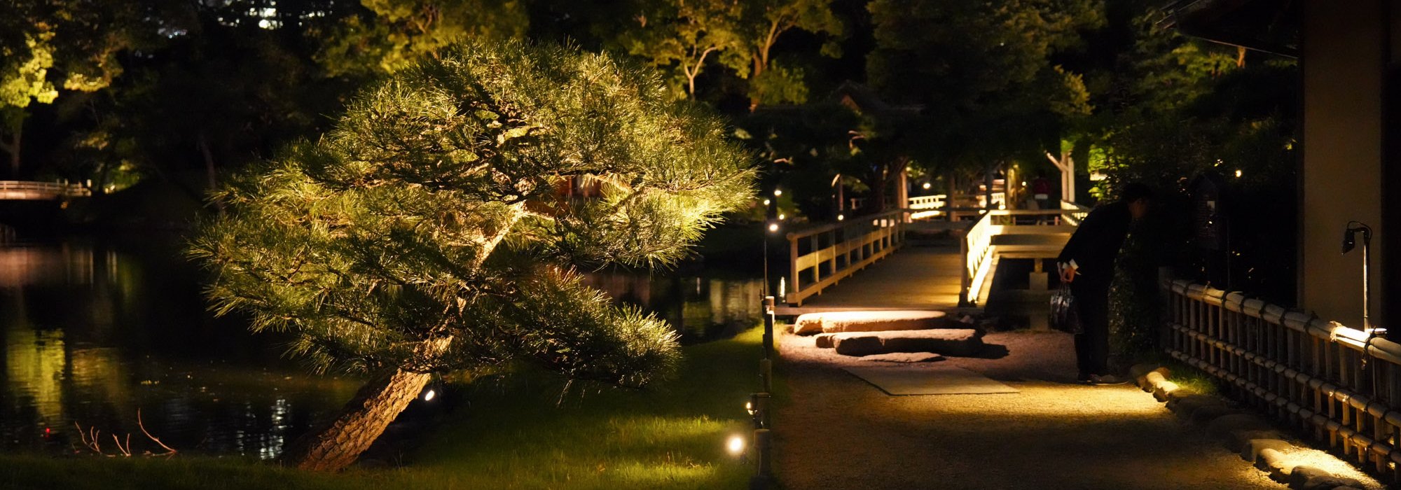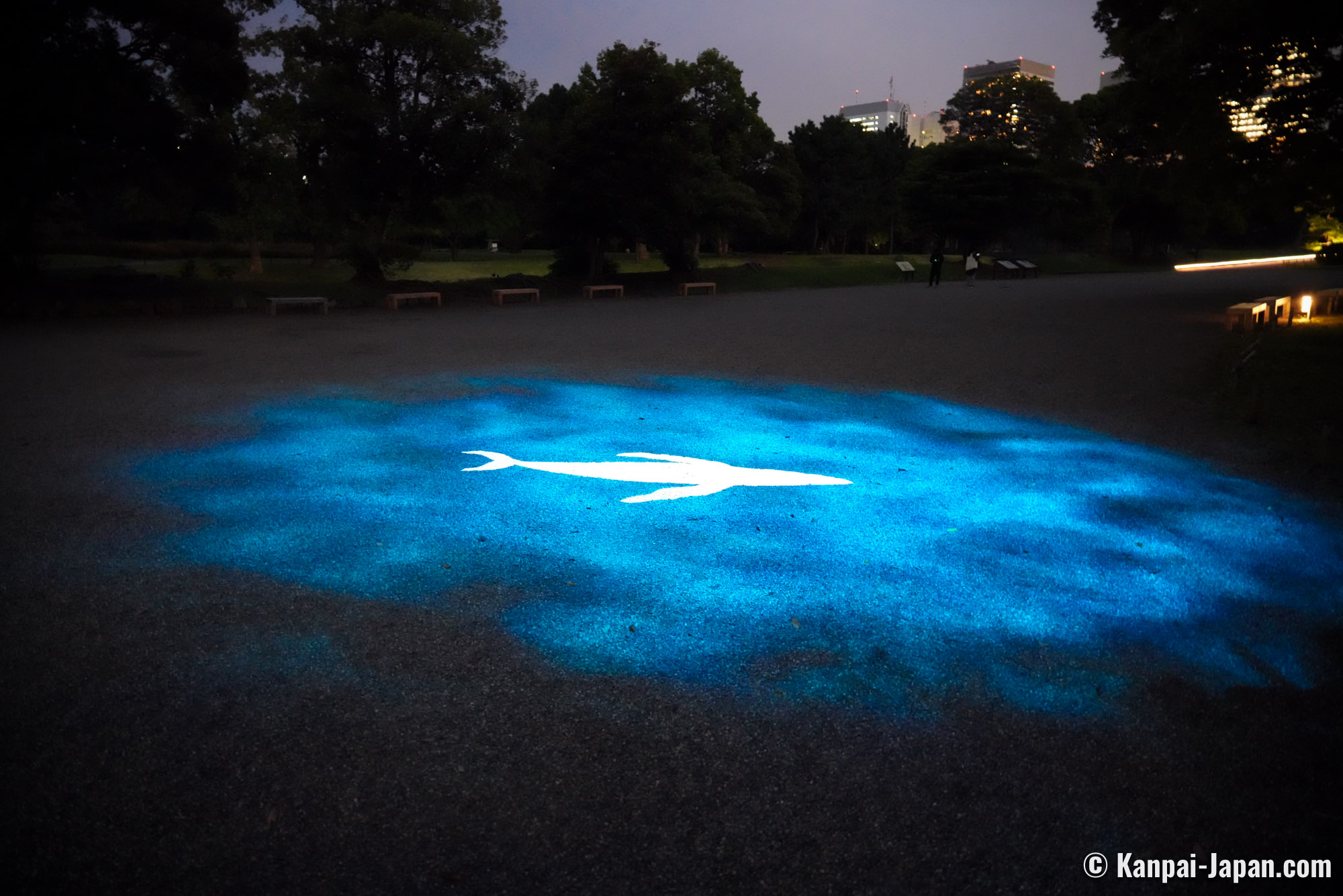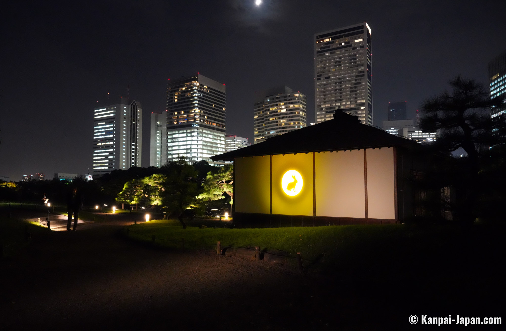 Hamarikyu Tsukimi Sanpo is a seasonal night event for the autumn moon-viewing tradition taking place at Hama-Rikyu, a Japanese garden located at the mouth of the Sumida-gawa river, in Tokyo Bay in Japan. Hama-Rikyu’s visitors follow illuminations in the dark to (re-) discover the myths and rituals of a Tsukimi harvest moon-watching party.
