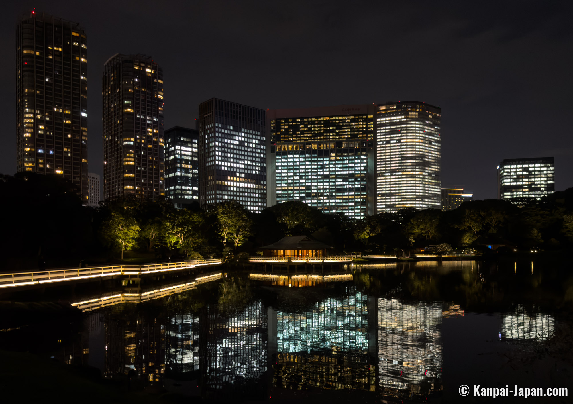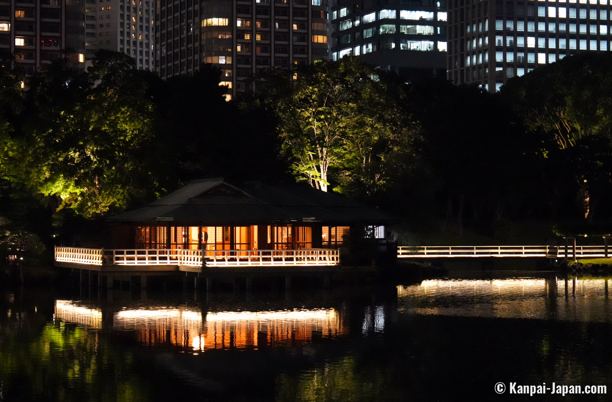 The event Hamarikyu Tsukimi Sanpo succeeds in creating a night stroll experience under the light of the harvest moon, whether the celestial body in plain sight or hidden by clouds. It offers an occasion to (re-) discover Shinto rituals in connection with this traditional moon-viewing festival, celebrated each year by the Japanese. Note that a few seasonal events are also held at the garden in the daytime.