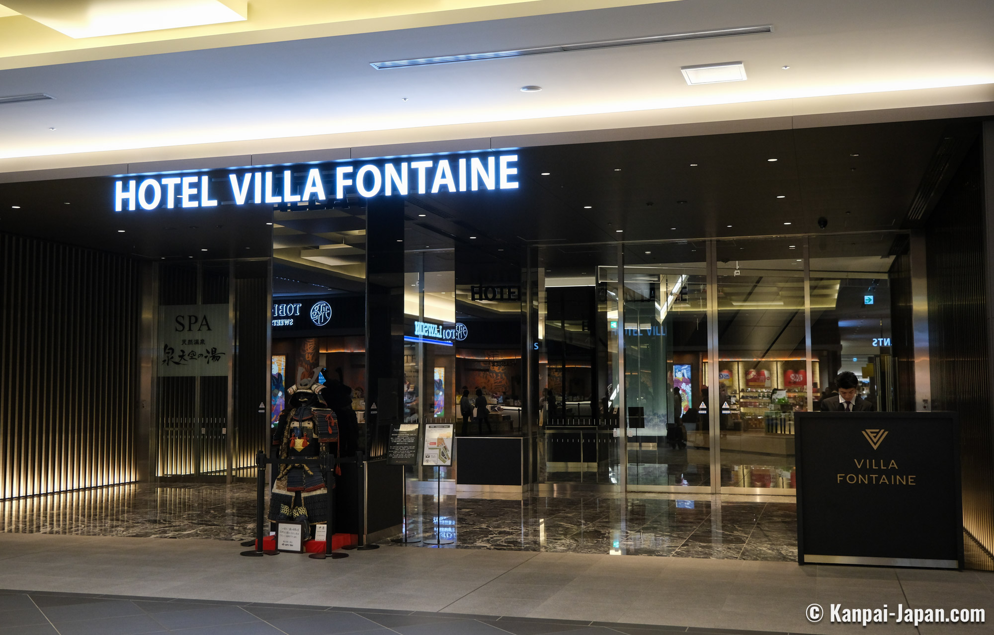 - 2 high-end hotels, spreading from level 4F to 11F: Villa Fontaine Grand and its 1,500 rooms; and Villa Fontaine Premier, on the luxury side, whose 160 rooms have a view on the Tama river and Mount Fuji (on a clear weather day). This Villa Fontaine complex is the largest airport hotel in Japan;