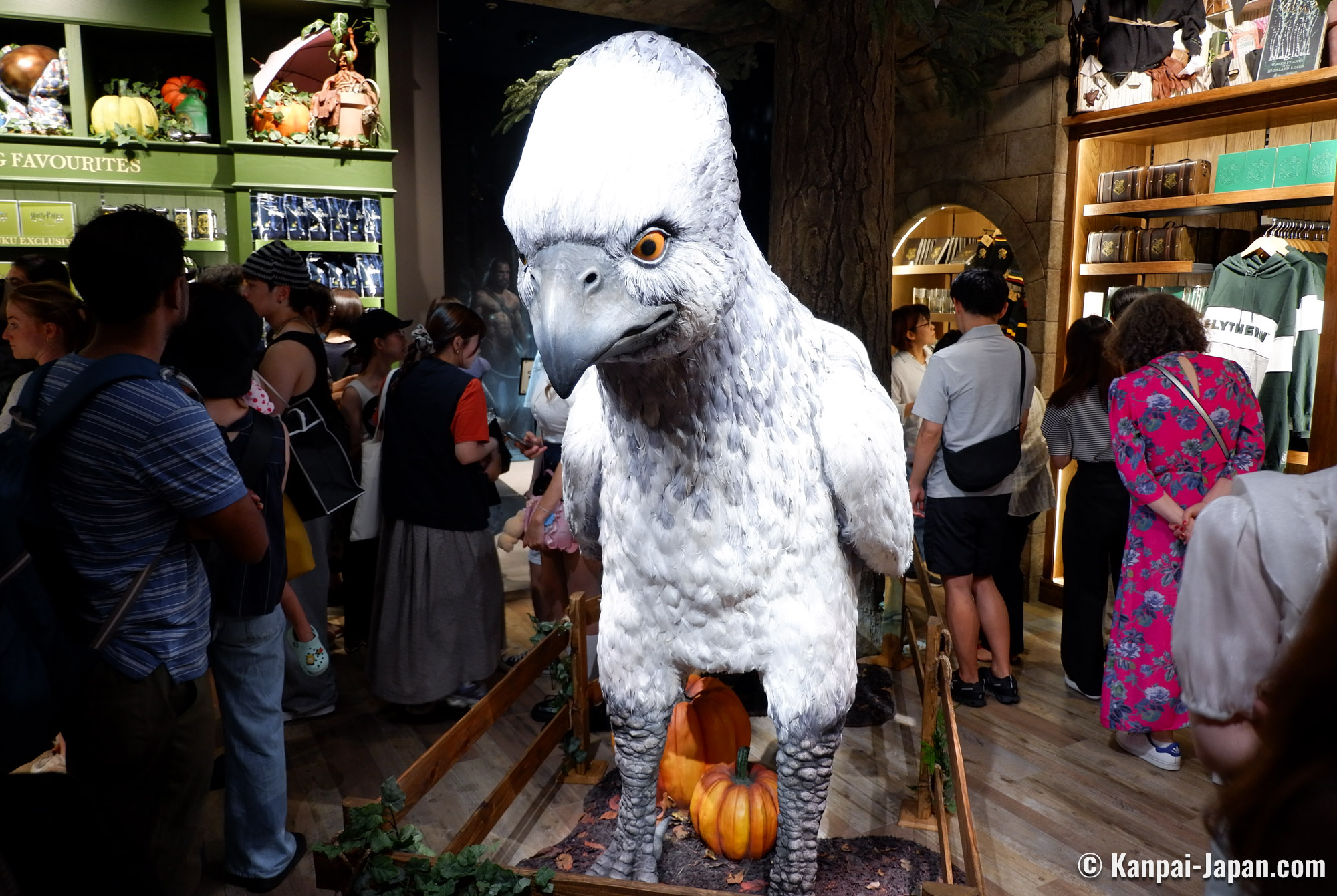 Inside, fans of the wizard’s universe discover an ambiance both unique and quite dark, in a blue and green hues. Immersed in the night and surrounded by the trees of the Forbidden Forest, visitors meet the iconic Buckbeak the hippogriff represented in a very realistic life-sized statue.