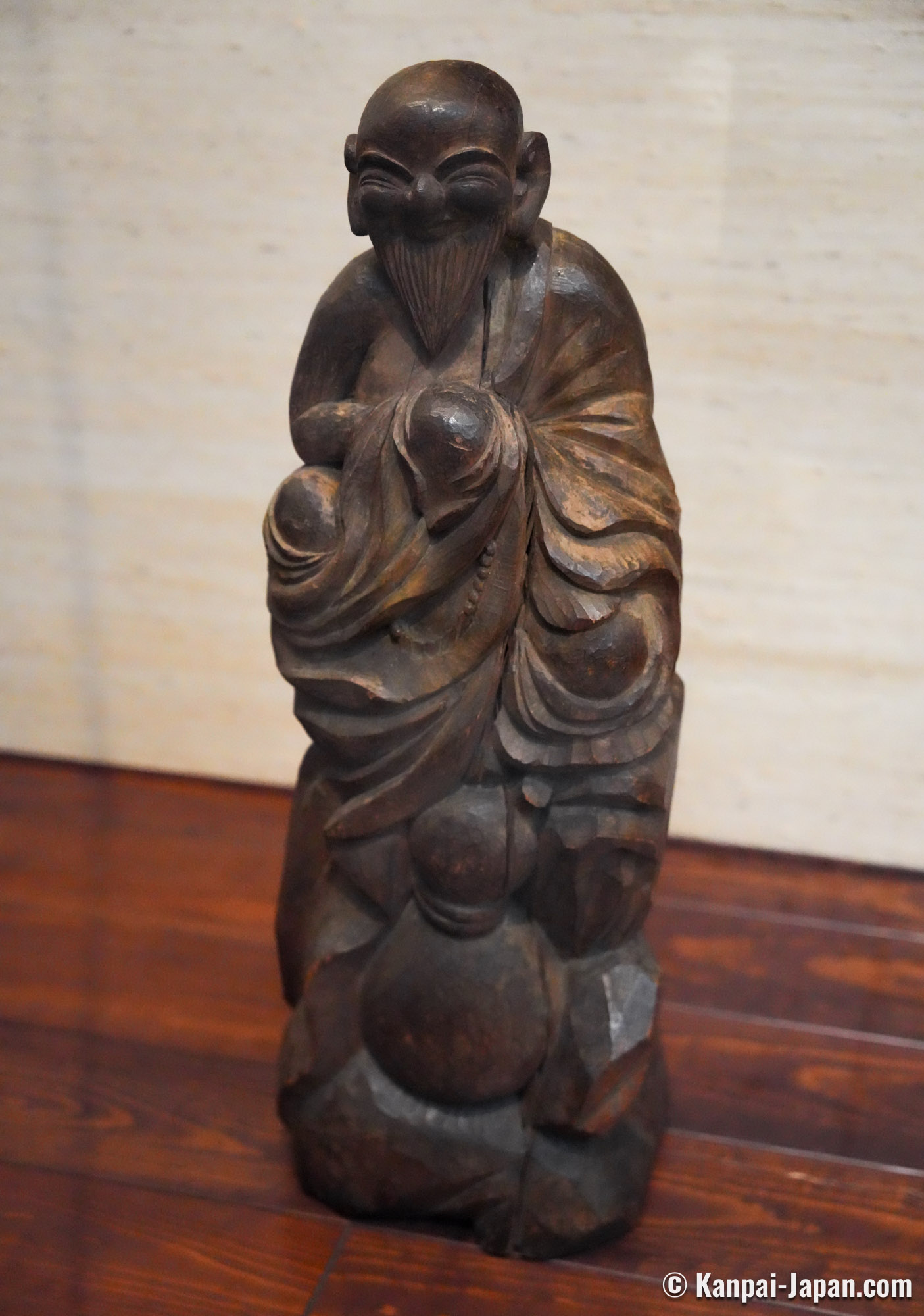 The collection displays everyday items made by craftsmen who were mostly Japanese and Korean, as well as Buddhist drawings and sculptures, highlighted by a tidy interior, with clear walls delineated by dark wood pillars and beams.