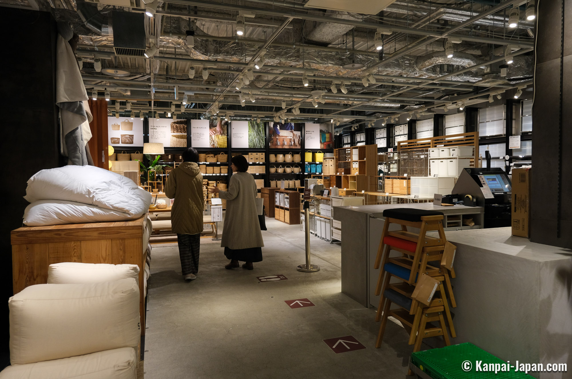 Floors 2F to 5F display the usual range of MUJI products: home goods (Japanese cooking utensils, furniture, textile), clothing (women, men and children), stationery and travel goods.
